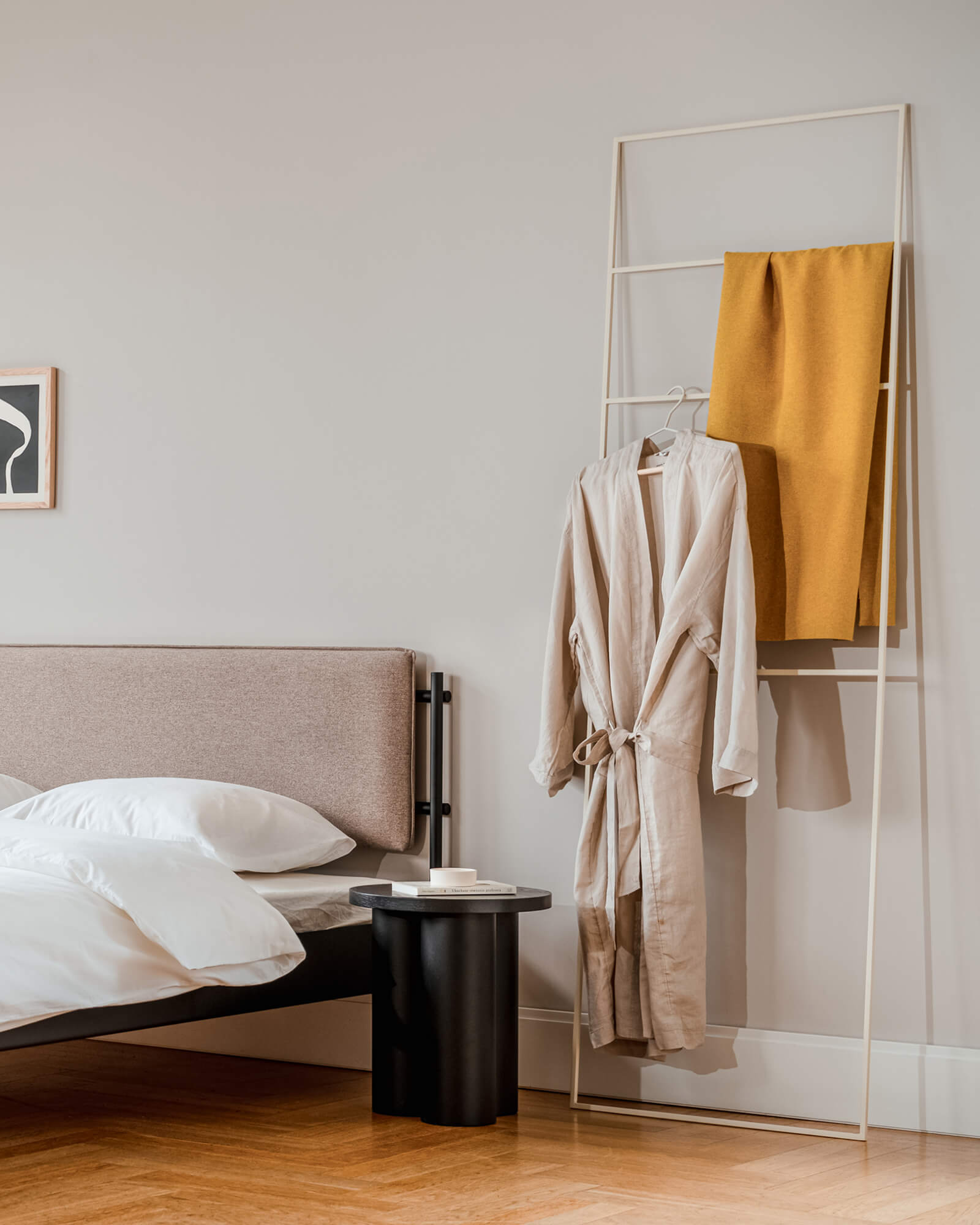 Introducing Tows rack - simple and charming addition to your bathroom, bedroom or hallway that effortlessly stores any of your towels, blankets, scarfs or other accessories. Tows is made of an extra-thin and extremely durable powder coated steel, brining elegance to any corner of your home. Benefit from the sleek and clean look of Tows rack that easily fits even the smallest interior. A towel hanger in the bathroom, shirt hanger in your wardrobe or a simple coat hanger in the hallway? Tows Ladder will manage all those functions perfectly well.
