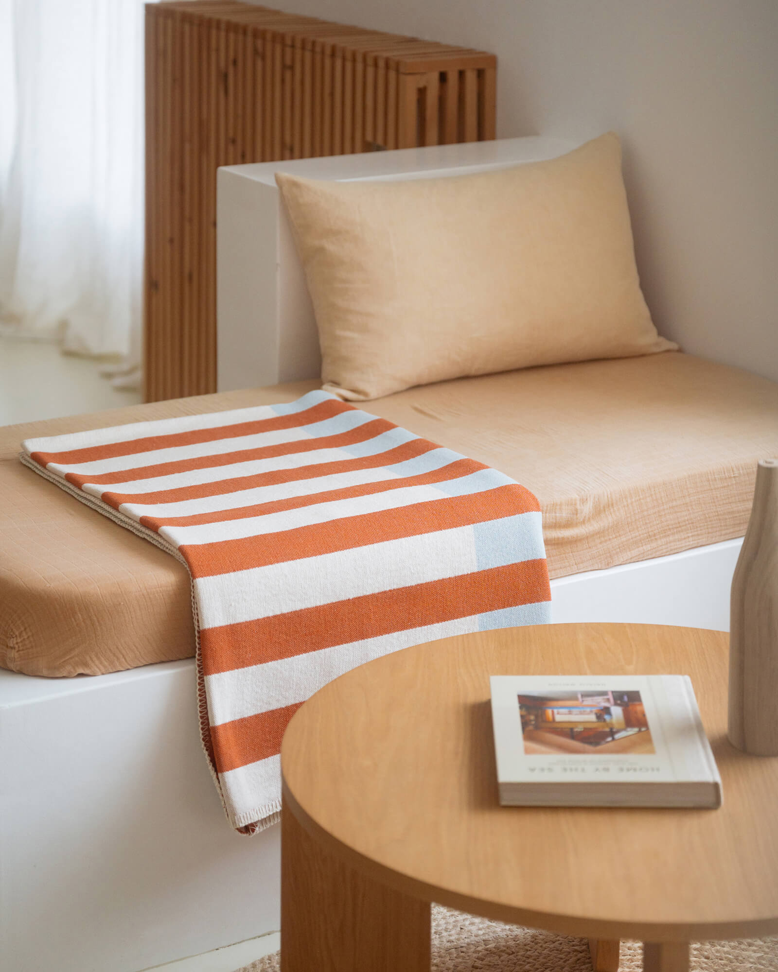 Meet Onu throw - your next favorite blanket, offering both a highly pleasant experience and unique looks, thanks to the perfectly harmonized color combinations. The tactile structure of the yarn is appropriate for numerous indoor and outdoor activities, including cozy lounging, picnicking and sunbathing on the beach.